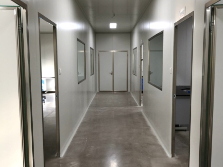 -材料选择:墙面、地面、天花板及门窗等应采用不易积尘、易清洁、耐腐蚀、防静电的材料,如夹心彩钢板、钢化玻璃、防火板、环氧树脂自流平或PVC地板等。